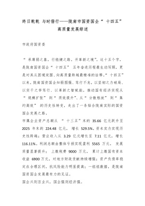 终日乾乾 与时偕行——陇南市国资国企“ 十四五” 高质量发展综述