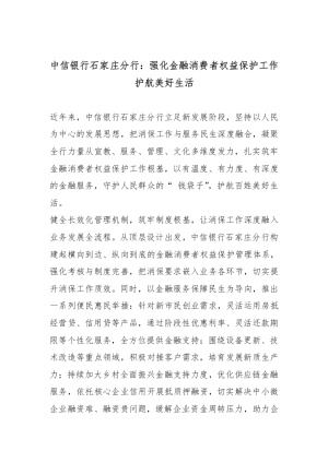 中信银行石家庄分行:强化金融消费者权益保护工作 护航美好生活
