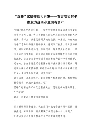 “沉睡”家底变活力引擎——看吉安如何多维发力盘活存量国有资产