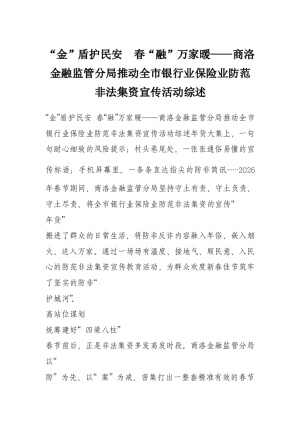 “金”盾护民安 春“融”万家暖——商洛金融监管分局推动全市银行业保险业防范非法集资宣传活动综述