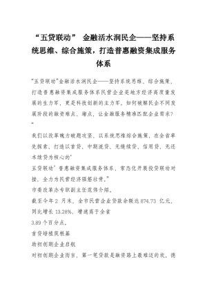 “五贷联动” 金融活水润民企——坚持系统思维、综合施策,打造普惠融资集成服务体系