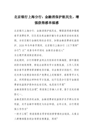 北京银行上海分行:金融消保护航民生,增强获得感幸福感