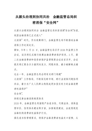 从源头治理到协同共治 金融监管总局织密消保“安全网”
