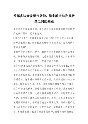 发挥多边开发银行效能,缩小融资与发展转型之间的差距