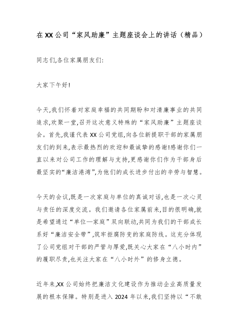 在XX公司“家风助廉”主题座谈会上的讲话(精品)_副本
