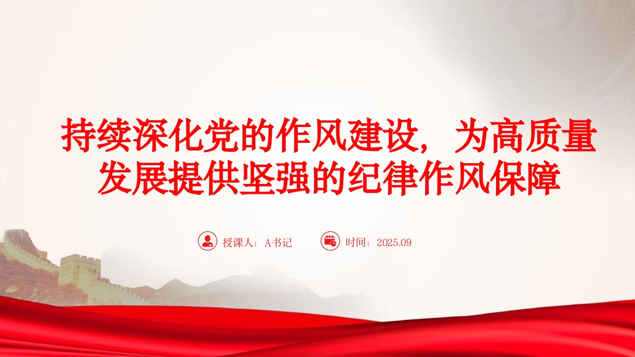 首页PPT模板廉政党课PPT:持续深化党的作风建设,为高质量发展提供坚强的纪律作风保障 (1)