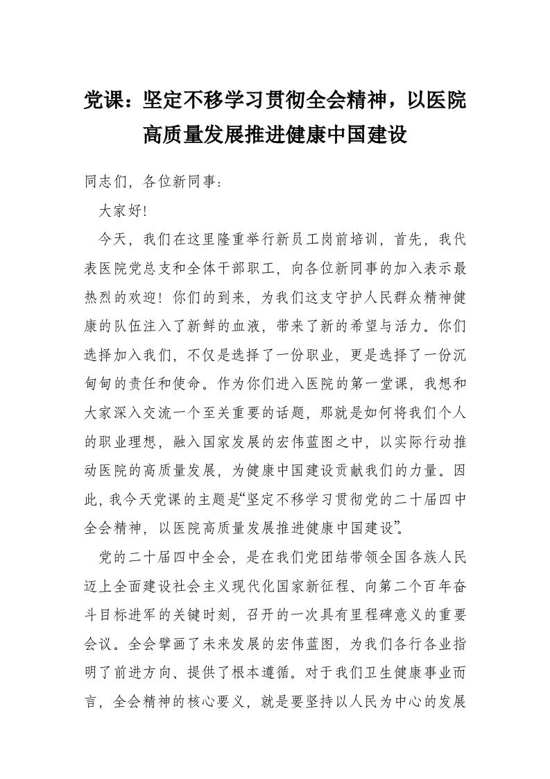 党课:坚定不移学习贯彻***精神,以医院高质量发展推进健康中国建设