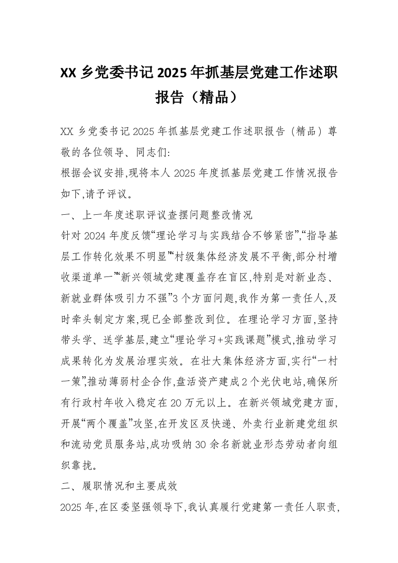 XX乡党委书记2025年抓基层党建工作述职报告(精品)