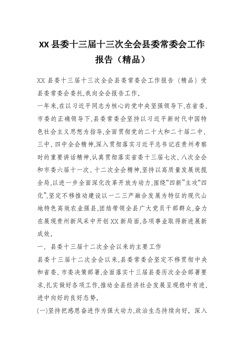 首页材料汇编XX县委十三届十三次***县委常委会工作报告(精品)