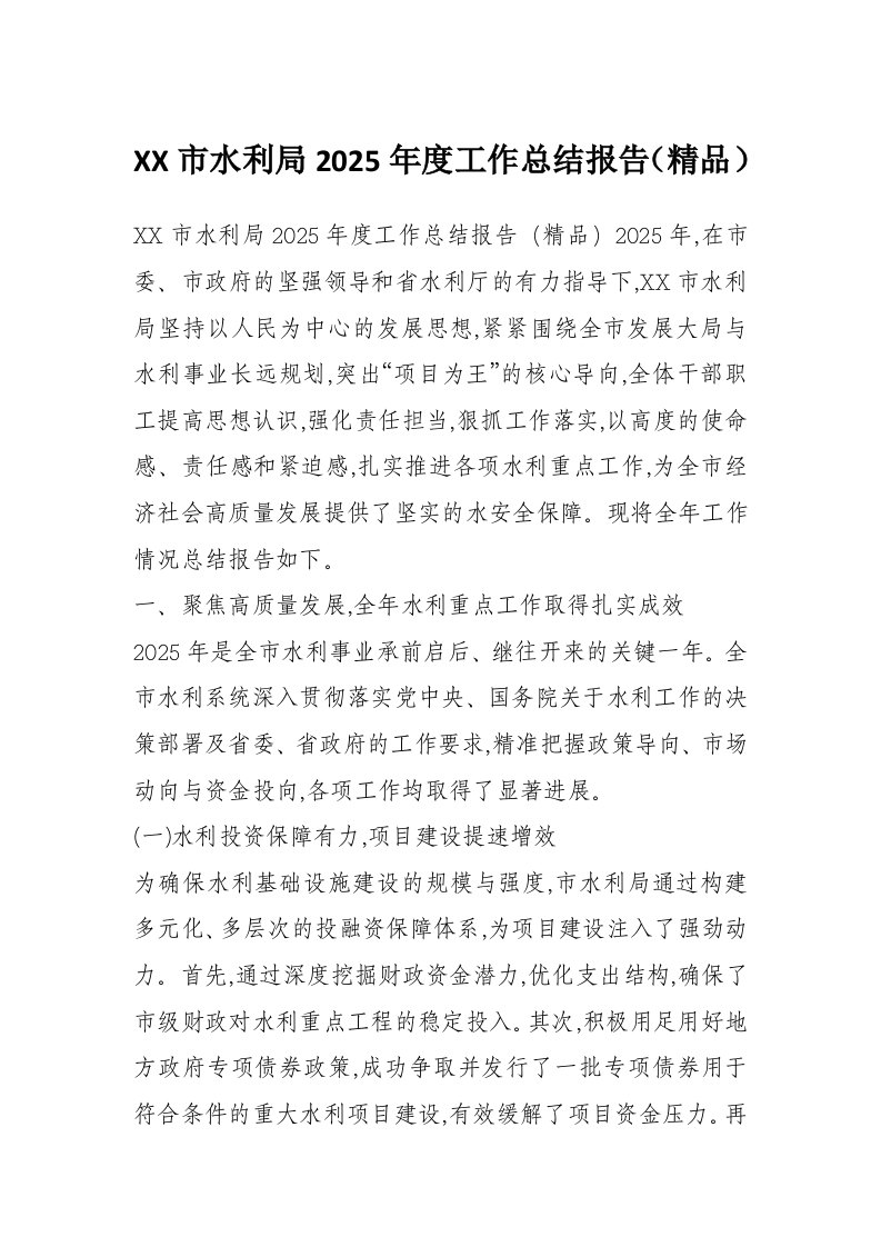 XX市水利局2025年度工作总结报告(精品)