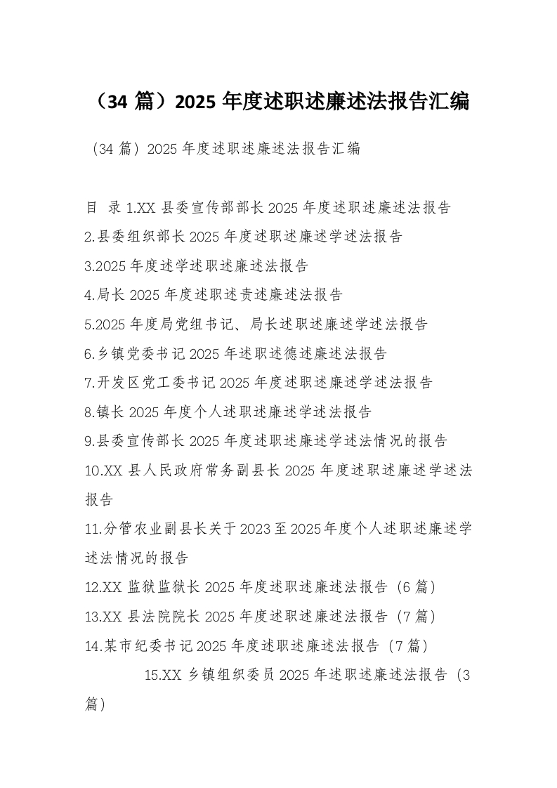 (34篇)2025年度述职述廉述法报告汇编