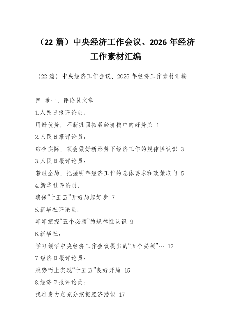 (22篇)中央经济工作会议、2026年经济工作素材汇编