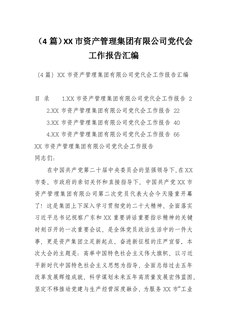 (4篇)XX市资产管理集团有限公司党代会工作报告汇编