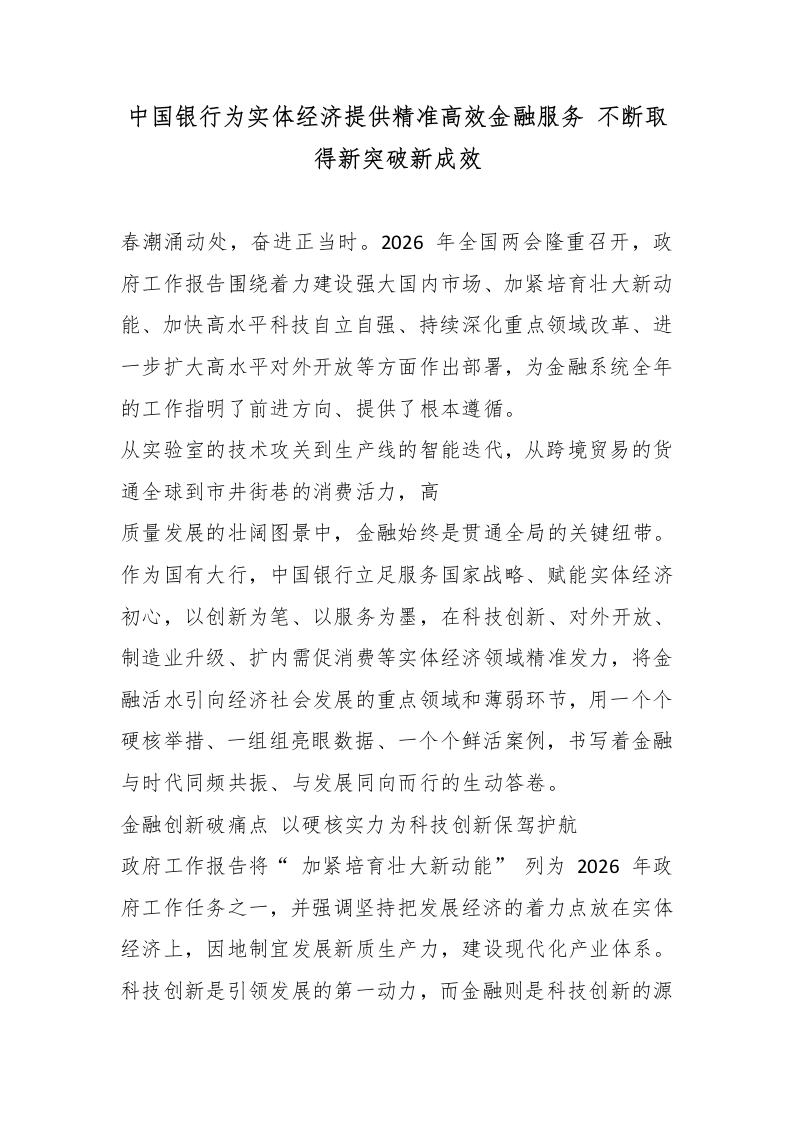 中国银行为实体经济提供精准高效金融服务 不断取得新突破新成效
