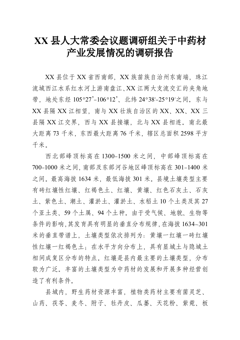 XX县人大常委会议题调研组关于中药材产业发展情况的调研报告