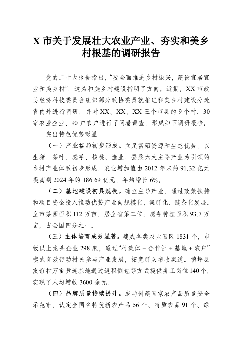 X市关于发展壮大农业产业、夯实和美乡村根基的调研报告