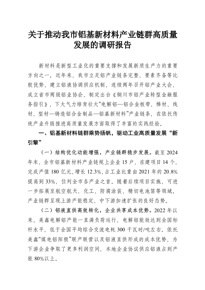 首页工作文档关于推动我市铝基新材料产业链群高质量发展的调研报告